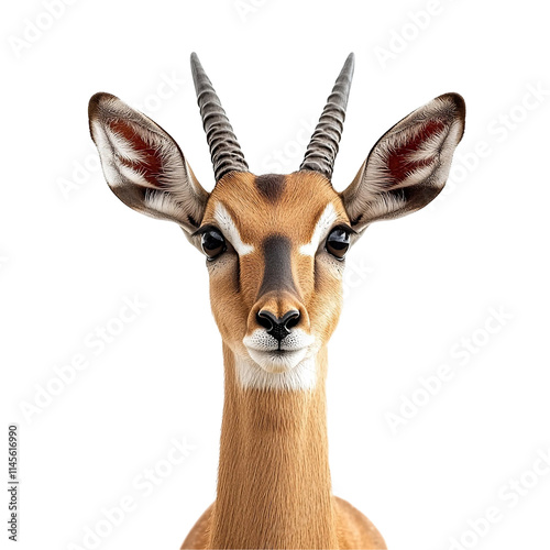 Front view close up of an extremely perfect looking single impala isolated on a white transparent background