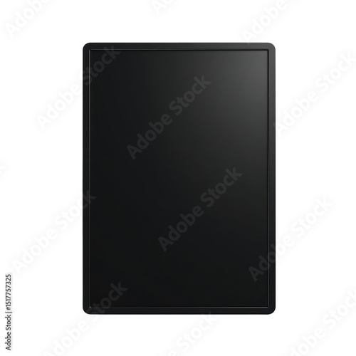 Front view of a portable digital tablet computer with a blank transparent screen on a transparent background isolated for presentation and mockup purposes