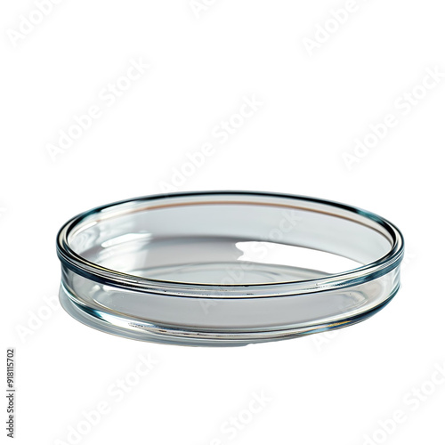 Front view of a single crystallizing dish isolated on a white transparent background.