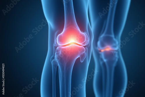 front view of an x-ray of the knee joint with the problem area illuminated in red