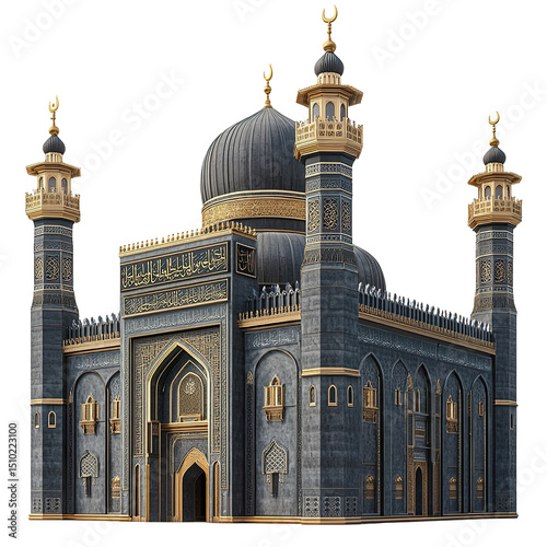 Front view of the Masjid al-Haram isolated on a white transparent background