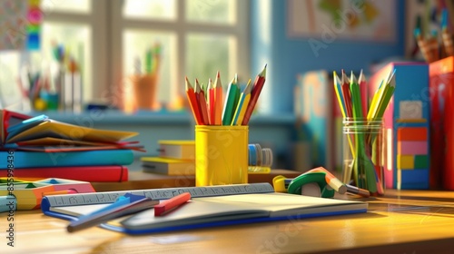 Frontal view of a tidy school desk