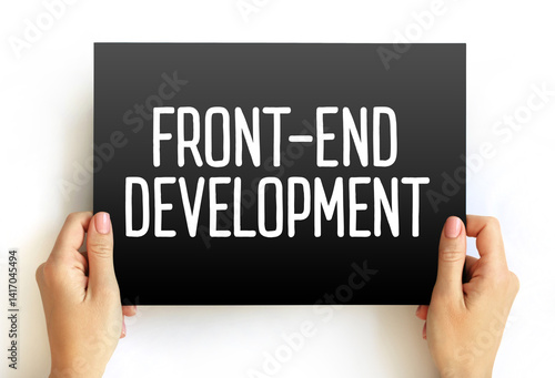 Front-end development is the development of the graphical user interface of a website, so that users can view and interact with that website, text concept on card