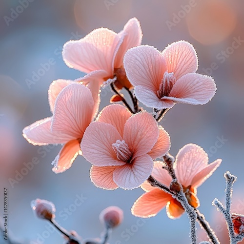 Frosted Pink Flowers: A Delicate Beauty of Winters First Touch