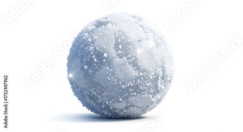 Frosted Snowball with Ice Crystals and Sparkles on White Background