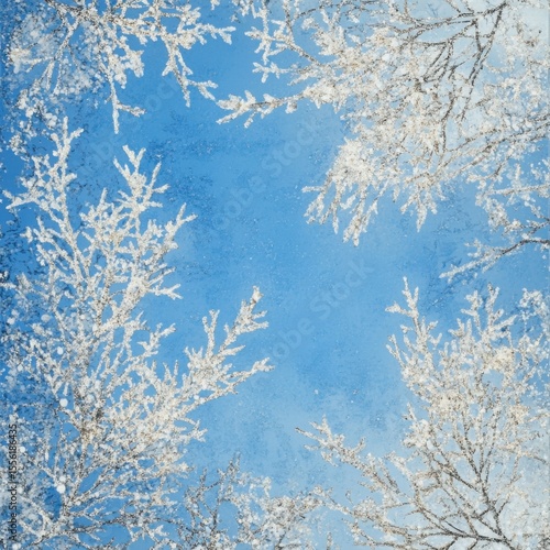 Frosted Tree Branches Against Light Blue Winter Sky Background