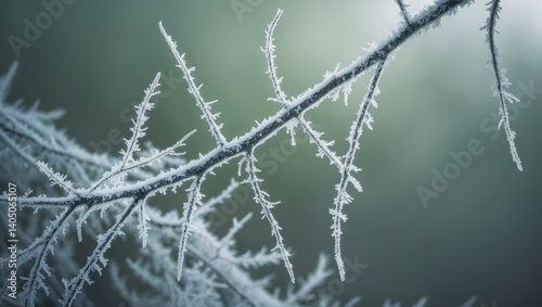 Frost-laden branch showcasing detailed frost crystals.