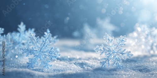 Frosty Blue Background with Delicate Snowflakes Glimmering in the Soft Light Creating a Tranquil Winter Atmosphere