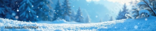Frosty blue tones dance across the winter sky, frosty landscape, wintery scene, snowflakes falling