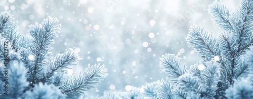 Frosty Winter Background with Pine Branches and Soft Falling Snowflakes Creating a Serene and Calm Atmosphere for Seasonal Themes and Holiday Designs