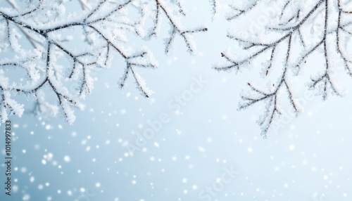 Frosty Winter Tree Branches with Falling Snow for Holiday Background
