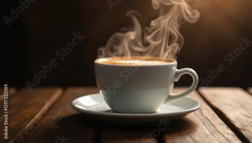 Frothy coffee floats above cup smoke rises, silhouette smoke, cup and saucer
