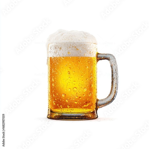 Frothy light beer in a glass mug