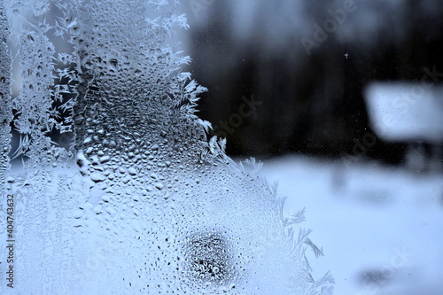 frozen condensation on the window pane
