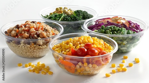 Frozen Grain Bowls: A balanced meal with quinoa, brown rice, and fresh vegetables, frozen for convenience, making it easy to enjoy a healthy lunch on the go.