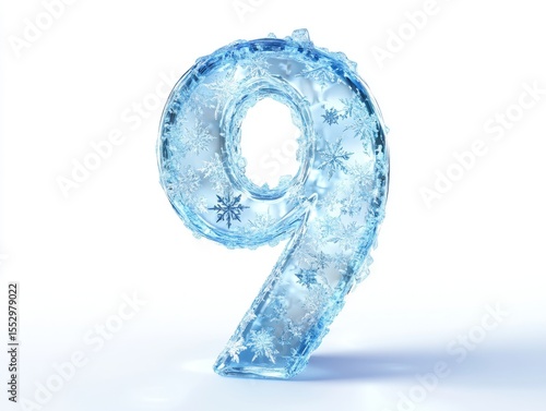Frozen ice number nine with snowflakes