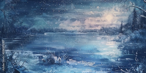 Frozen lake in the moonlight.