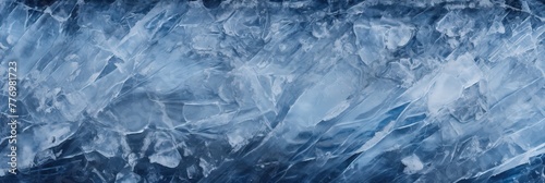 frozen lake surface with well-defined ice crystals. The ice is clear and shiny, which indicates its purity.