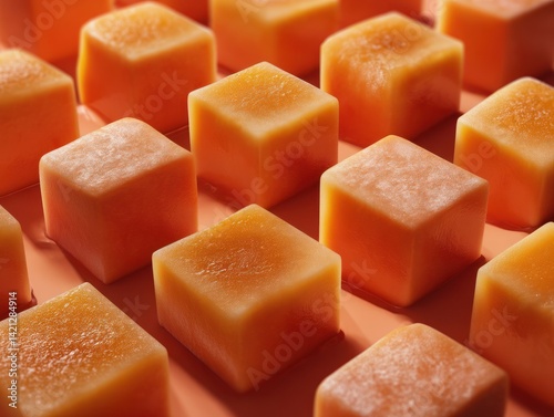 Frozen, orange, cubed fruit, perfect for baby food.