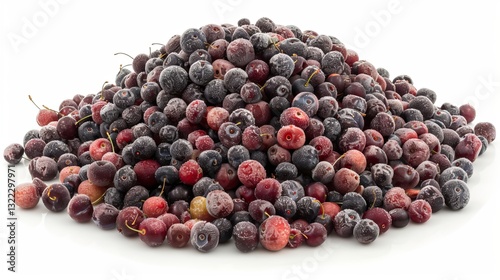 Frozen Organic Berry Mix with Blueberries, Cherries, and Raspberries Isolated on White Background
