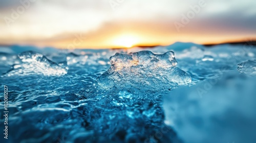 Frozen waves at sunset