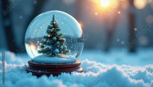 Frozen winter wonderland with a miniature Christmas tree inside a snow globe, Decorative Elements, Small Tree, Snowflakes
