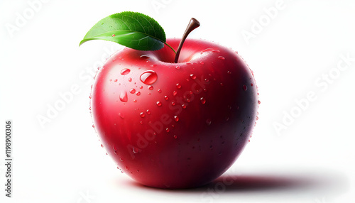 Fruit A vibrant red apple placed upright with its stem and leaf visible The water droplets on its surface 4