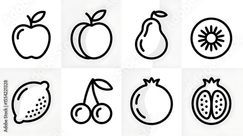 Fruit Icons Apple Peach Pear Kiwi Lemon Cherries Pomegranate isolated on a transparent background