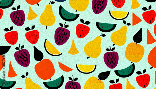 Fruit pattern for printing on wall decorations, covers, wallpapers, fabrics. Minimalist shapes. Oil paint