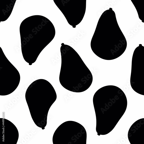 Fruit seamless pattern. Black and white colors. Avocado. Pears. Guava. Bright colored fruits. Pattern for fabric, textile, clothing, paper, packaging.