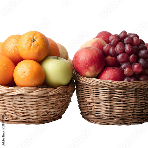 Fruit variety, in wicker baskets, showcasing vibrant colors and textures. isolated on white background or transparent background png cut out 21814926 1