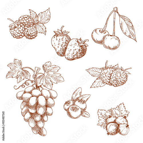 Fruits and berries sketch set