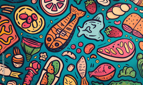 fruits and vegetable herbal concept for background or 2d illustrator cartoon.