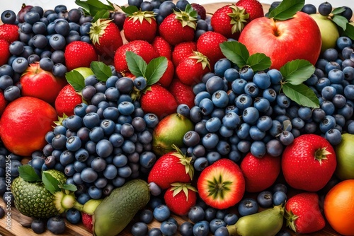 fruits inthe bucket fiiles with blue berry apple mango and grapes