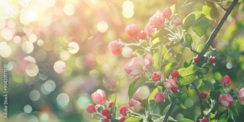 Fruity, flowering apple tree orchard. AI generation
