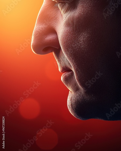Frustrated Businessperson - Close-up Portrait with Red Toned Background and Warm Light Flares for Text Space