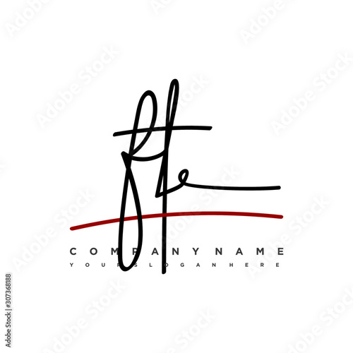 FT signature initials. Handwritten logo vector template with red underline. Hand drawn Calligraphy lettering Vector illustration.