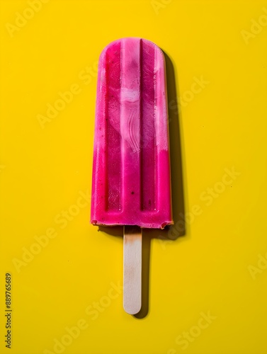 Fuchsia Popsicle on a summery yellow Background with Copy Space