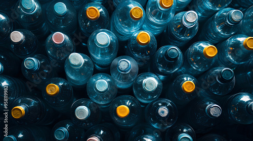 Full frame shot of large group of plastic bottles. top view