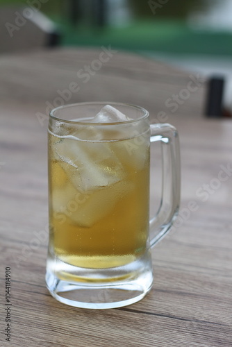 full glass of beer on table at the restaurant