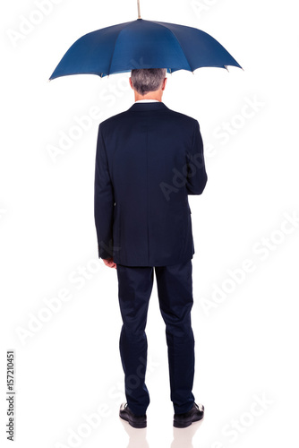 Full length back view businessman with umbrella