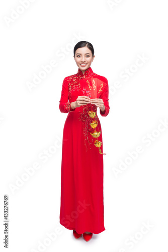 Full length of a beautiful Asian woman on traditional festival c