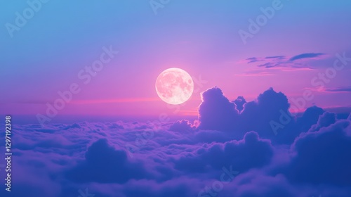 Full Moon Above Clouds Displaying Vivid Colors And Aesthetics