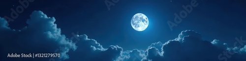 Full moon dominates a night sky, clouds drift slowly , starless night, wonder