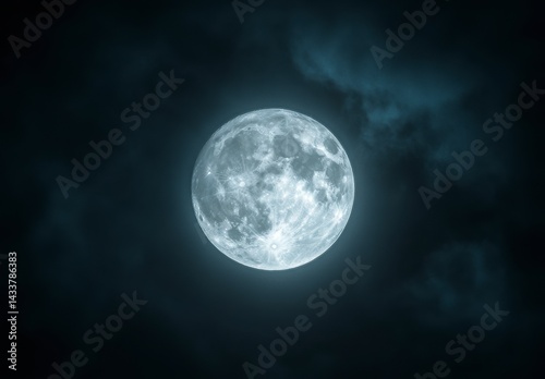 Full Moon Night Sky Close up of a Bright Lunar Orb Partially Hidden Behind Dark Clouds