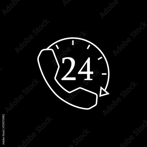 Full time call services line icon, seo & development, help and support sign, a linear pattern on a black background, eps 10.