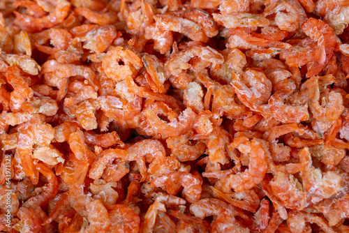 Full view of dried shrimp, fragrant, salty, is an ingredient used in many Thai dishes such as papaya salad, chili paste.