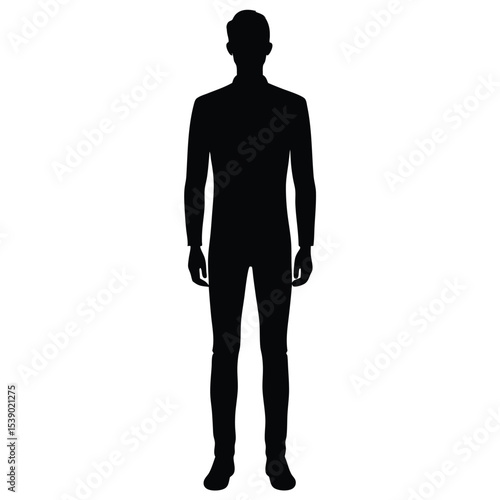 FullBody Silhouette of Standing Man in Suit Modern Fashion Illustration Icon