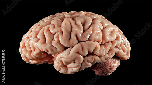 Fully rendered human brain in precise anatomical detail highlighting different brain regions and lobes