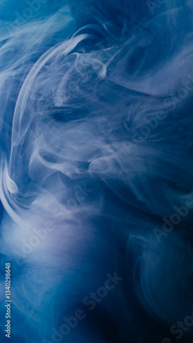 Fume splash. Cloud blend. Puff paint spray blue violet shot spread pigment on black background. Art twirl smoke abstract defocused flow.